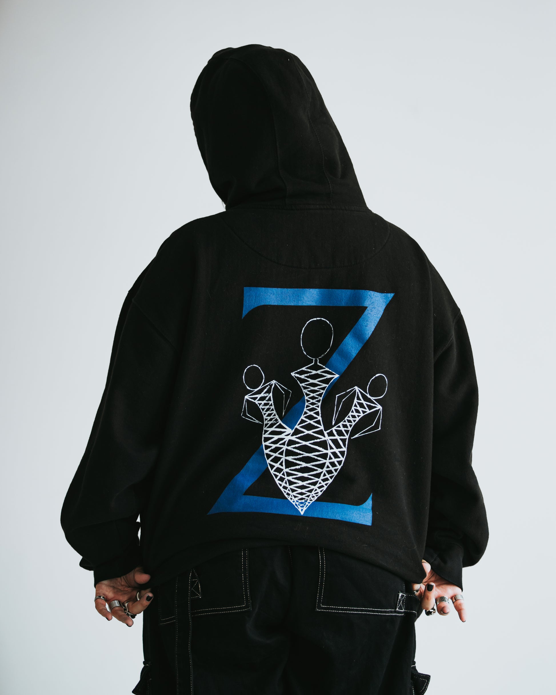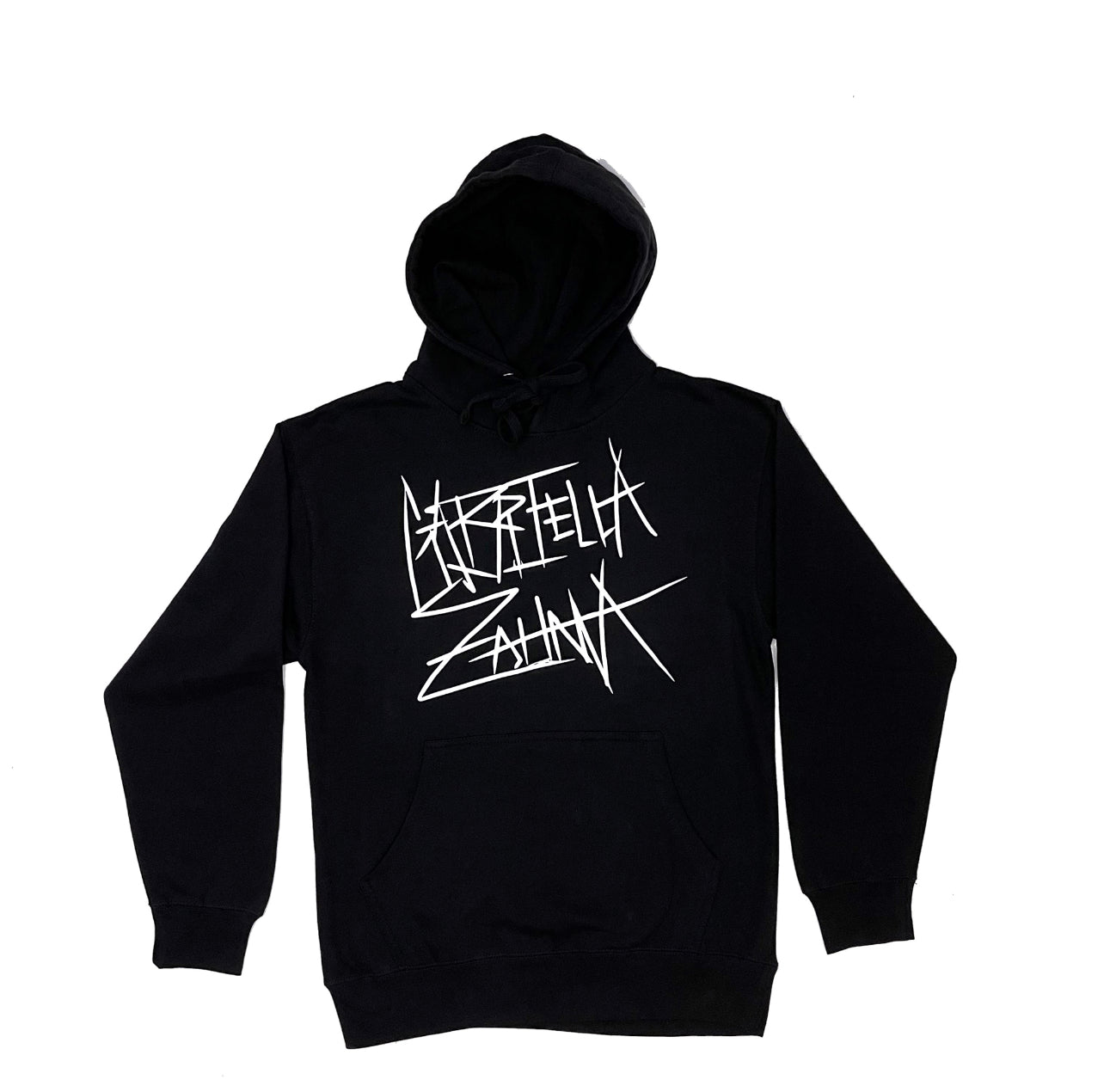 UNISEX BLACK HOODIE WITH WHITE “GABRIELLA ZAUNA” LOGO PRINT ON FRONT