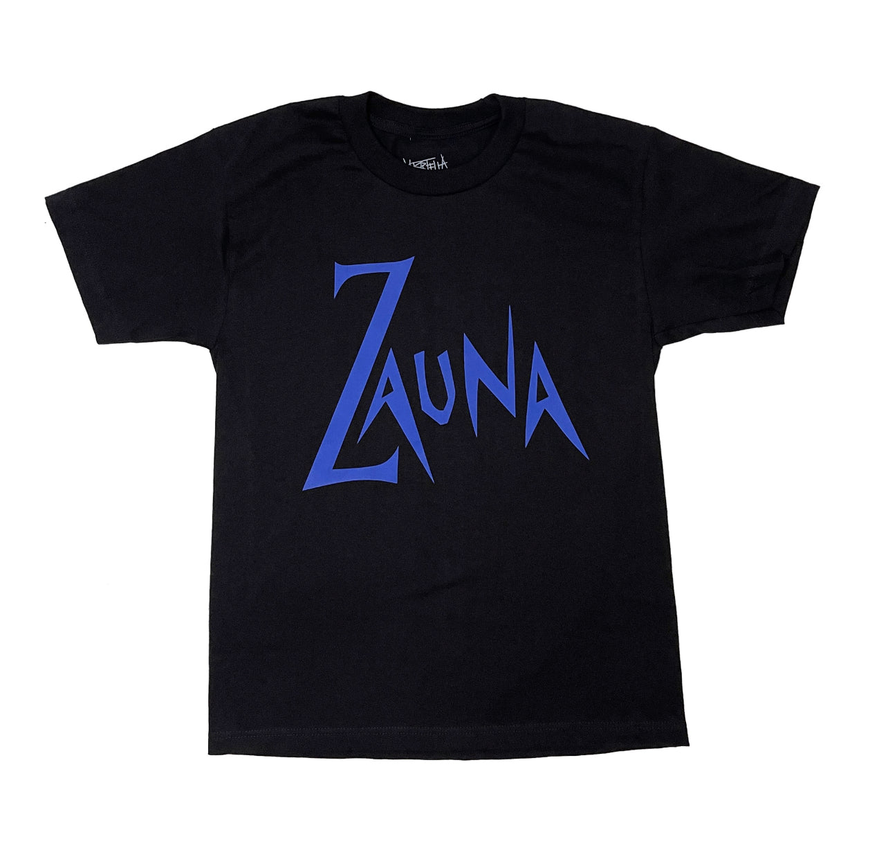 UNISEX BLACK TEE WITH HAND DRAWN “ZAUNAL BLUE LOGO PRINT ON FRONT